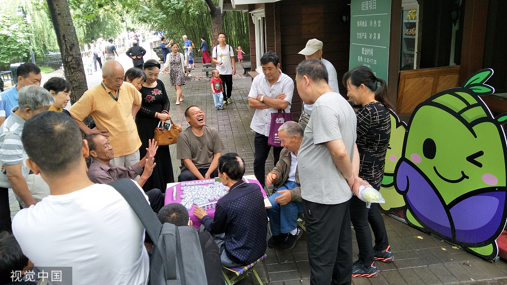2019年9月13日,中秋节,北京,紫竹院公园,玩麻将牌娱乐的市民。已经有律师质疑“麻将馆禁令”的合法性,称取缔作为一种行政处罚,执法主体应该是市场管理局等法律赋权的部门,而非公安。另外,以通告形式进行取缔,程序上有越权的嫌疑,违反了依法行政的原则。