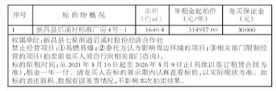 本次拍卖标的为新昌县后溪村标准厂房4号-1五年租赁权,具体为: