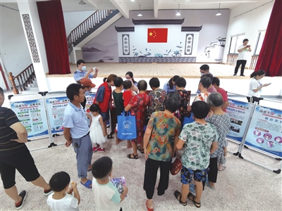 8月2日,“阳光文化进礼堂”活动走进羽林街道央于村,由县司法局、公安局、团县委等单位组成的服务团,为村民提供法律援助、健康检查、禁毒宣传、流动少年宫等多项服务。当晚,县调腔剧团还带来专场演出,受到村民欢迎。