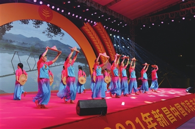 10月15日晚,由县委县政府主办,县农业农村局、乡村振兴局、融媒体中心承办的2021年新昌中国农民丰收节农民文化晚会在康乐广场举行,各乡镇(街道)选送的歌舞、戏曲、小品等节目精彩纷呈,再现丰收的热闹场景,分享丰收的喜悦之情。(记者 杨玉墀 摄)