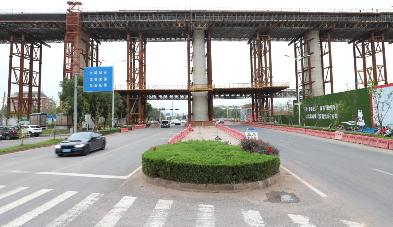 梁部施工中嵊新大道畅通无阻