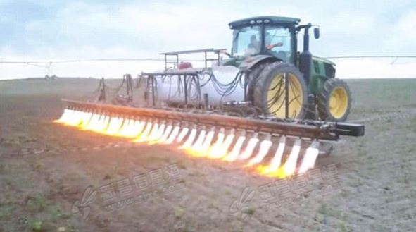 美国农场,火烧杂草,"火焰"除草机,1小时除草20亩,难怪美国粮食出口这么发达!