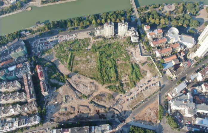 你看这块地,东北方,西方都有房子,这个设计不好设计。如果南面高层,那么后面将没有阳光。但不造高层,如何赚钱。这个到时看设计师如何设计