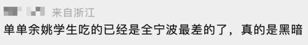 而这个新闻报出来后,很多余姚人出来吐槽,说20多年来,食堂问题一直存在。有人在食堂打饭,3块排骨,卖11块钱……简而言之,就是以高于市场的价格,让学生吃到比路边摊更不放心的食物。