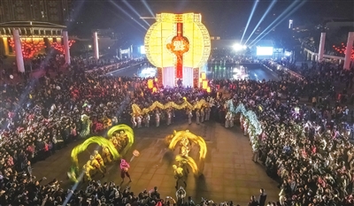 2月19日,新昌二月天·民俗狂飙第一天,我县大佛寺景区、康乐广场、南街、天姥山等区域同步开启了狂欢周活动,舞龙舞狮、长桌宴、板凳龙技艺展示等多彩民俗文化活动,让市民品味到了一场场文化大戏。更多详情请见今日二三版。 (记者 俞晓委 摄)
