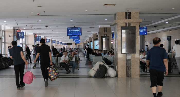 别看上海长途客运南站的候车厅里,来来往往人也挺多
