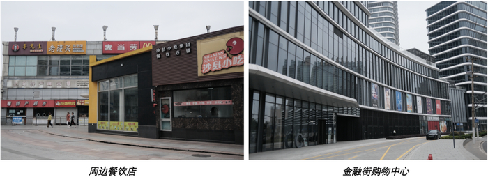 就连一般大型交通站点旁都很是繁华的高楼大厦,仅仅一街之隔的金融街购物中心,也非常冷清