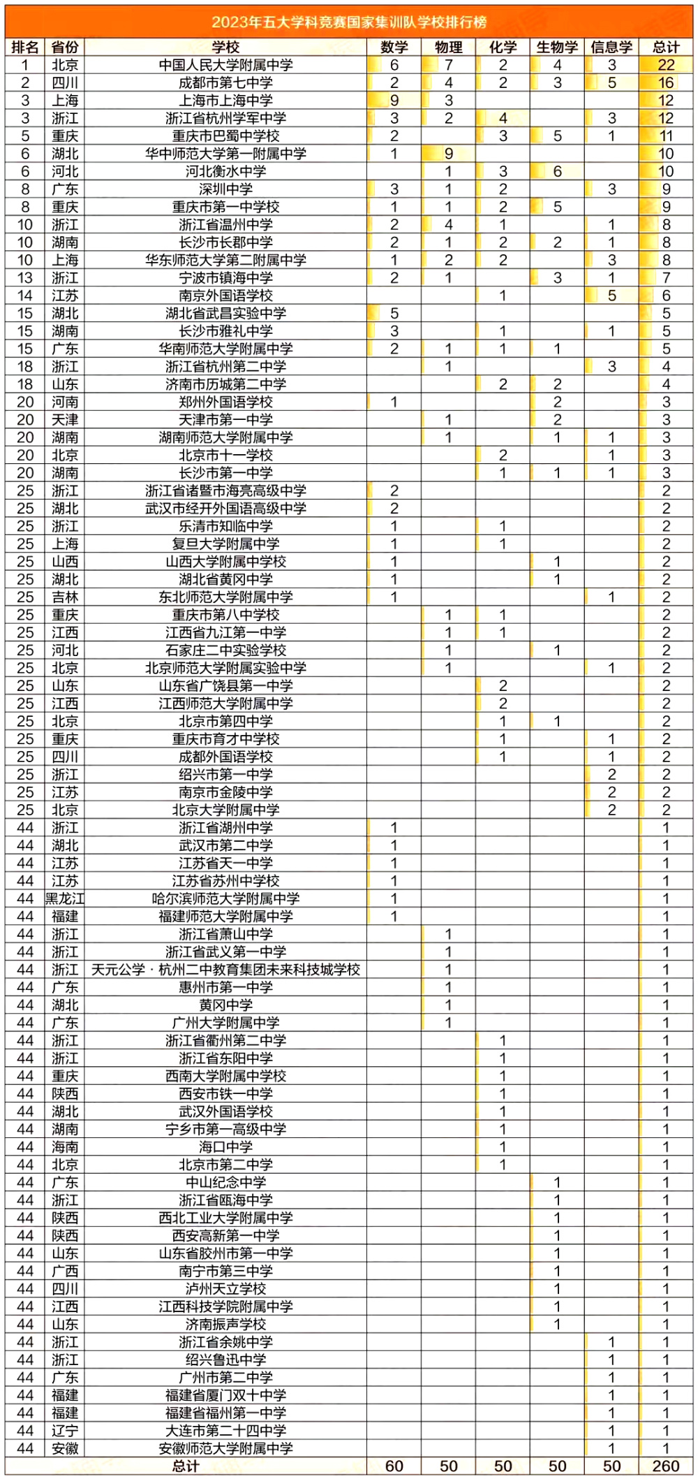 2023全国高中奥赛排名揭晓!浙江16校上榜,中国人大附中排名第1