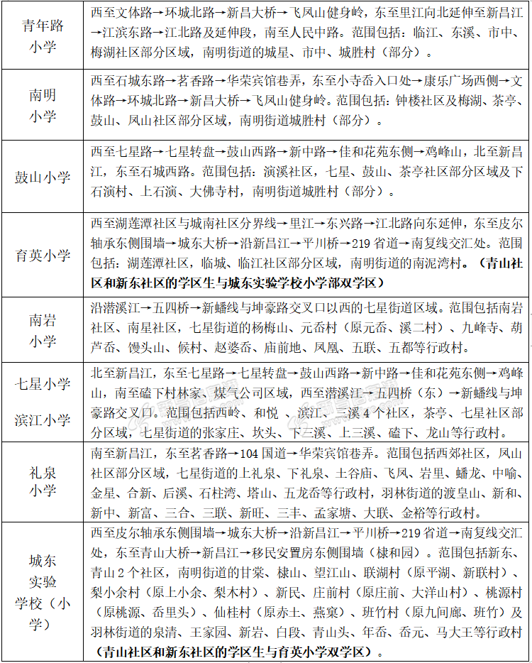 3.滨江小学招生范围与七星小学一致,新生可选择其中一所学校报名;如报名人数超过招生计划,优先安排到另一所学校;如两校均超出招生计划,则按相关规定调剂。
