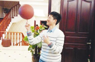 对于篮球的爱好,周梁合一直没有间断过。结束紧张训练回家,她趁机玩了一回篮球。只见她用右手食指顶球,左手一拍,整个球不停地转啊转,这一手绝活是她的保留节目,曾经创下新昌中学篮球旋转时间的“吉尼斯纪录”,至今一直无人突破。