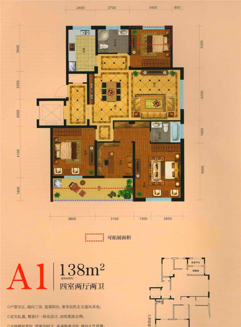 阿里山庄138平方,东边套,楼层佳,四室二厅二卫双阳台毛坯房,售价116.8万,车位另售