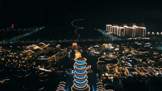 数百架无人机腾空而起,排列变换,与绚烂烟花共舞苍穹,交织出梦幻般的光影景象,科技与传统相结合!帅出新高度,随手拍都是刷屏级大片!特色演艺