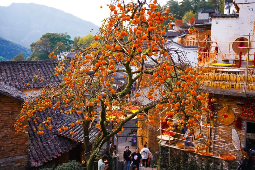金秋十月,篁岭的柿子迫不及待地登上了秋日的舞台,圆滚滚的柿子在阳光下尽情积蓄能量,孕育出秋日里最甜蜜的果实。