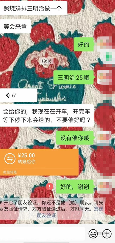 guku 发表于 2021-4-1 21:49 首先,我先声明一下,朋友圈挂人是店家的错。接下来给你分析一下你和网友的分歧点就在于店家发的“三明治 25哦”这句话,网友,包括我在内,大部分人都不认为这是店家在催你(包括后面店家也回复你了并没有在催你),店家并没有要你立马付钱的意思,可能是因为店家并没有发语音,所以至少从文字上是看不出店家在催账的语气意思;至于你,不知道你当时是不是心情不好还是理解有误,会吧店家的这句话(至少我认为没问题)理解为了店家怕你赖账,来催钱的意思。 |