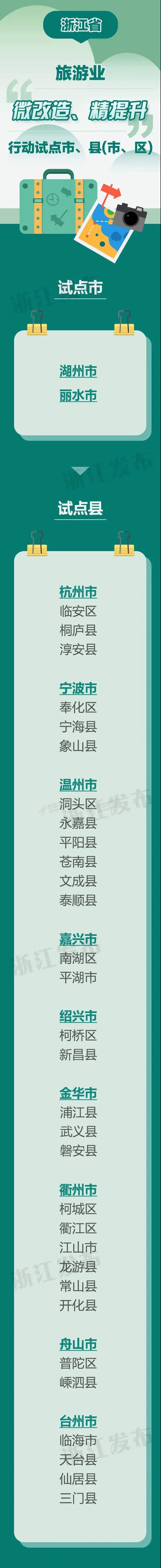近日,浙江省文化和旅游厅公布了旅游业“微改造、精提升”行动试点市、县(市、区)和单项试点单位名单.新昌入围行动试点市、县(市、区)。(转载至浙江发布APP,原标题:浙江两设区市、31县(市、区)成为全省旅游 ...
