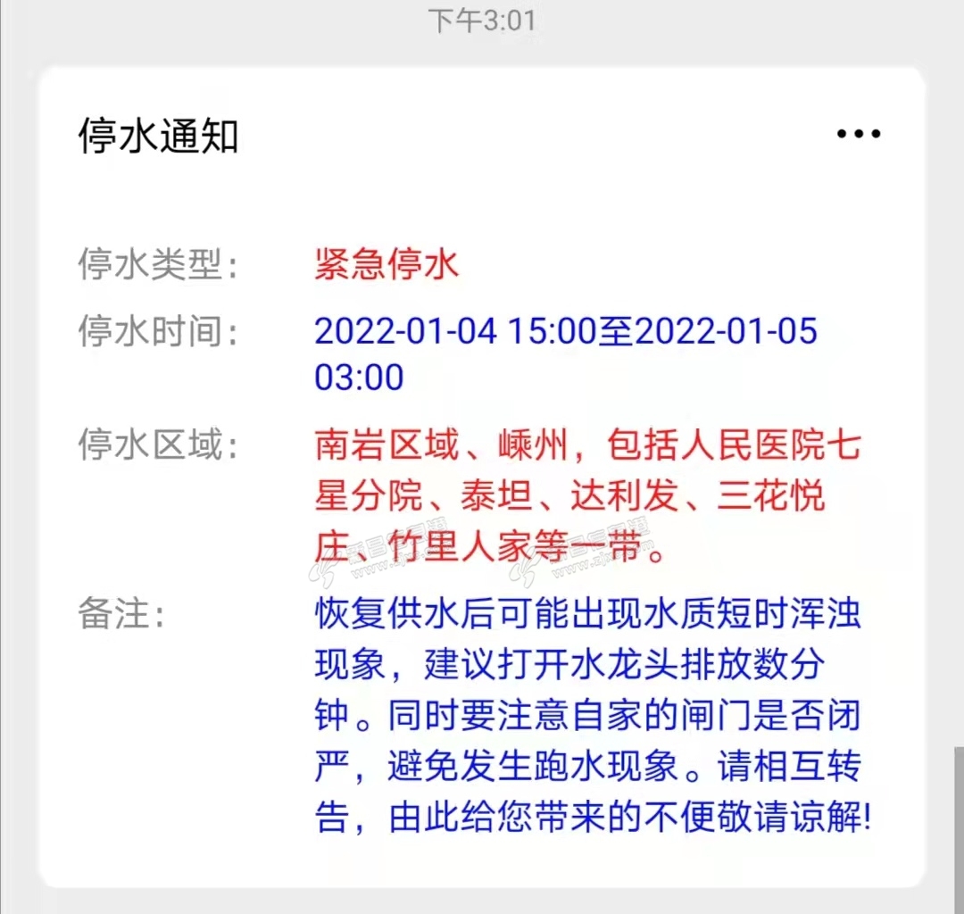 送秋 发表于 2022-1-4 15:15 今天就停水了 |