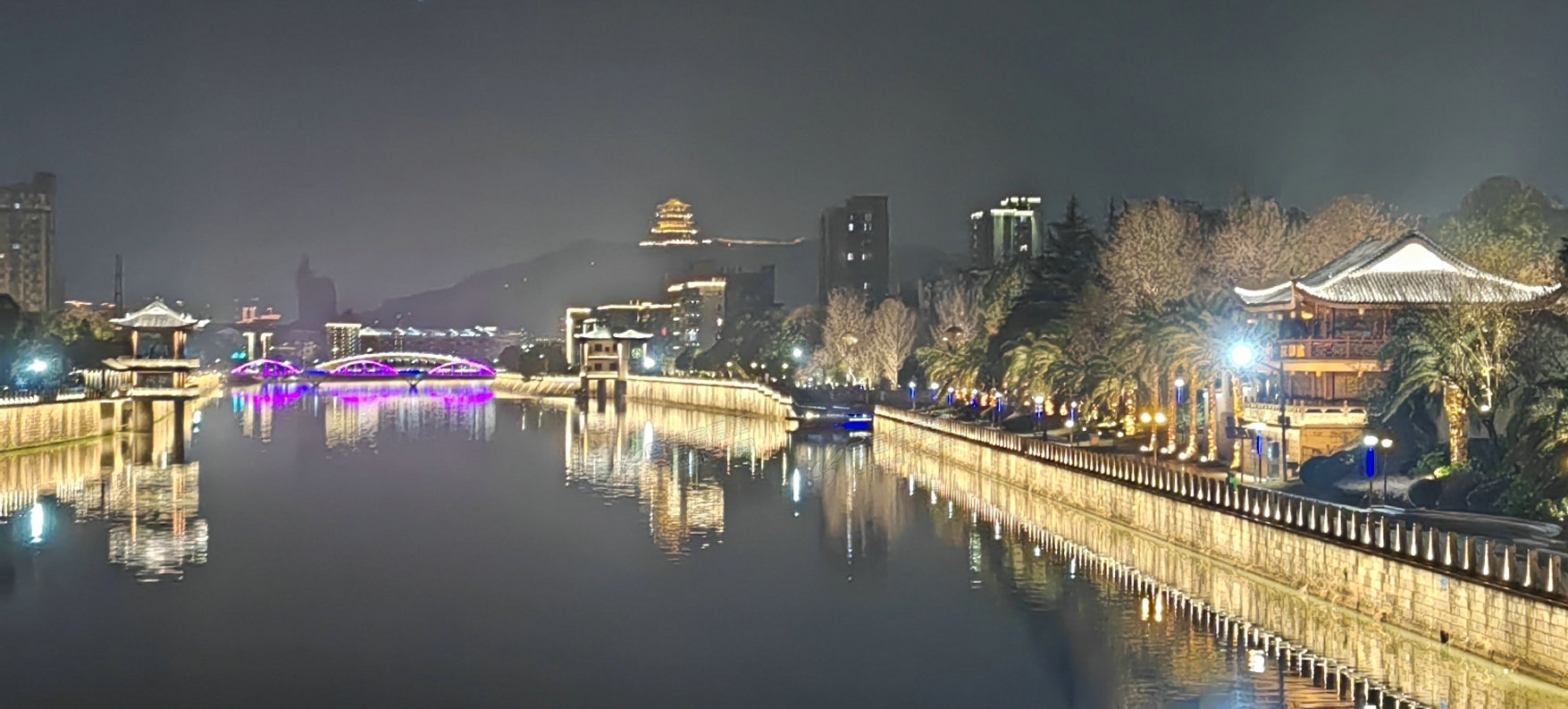 字字双 • 小年夜之新昌江夜景 廊亭榭阁檐复檐,大小桥弓弯复弯。楼房灯闪盏复盏,水滨夜色鲜复鲜。