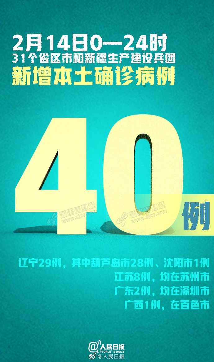 2月14日0—24时,31个省(自治区、直辖市)和新疆生产建设兵团报告新增确诊病例80例。其中境外输入病例40例(广东16例,福建8例,上海6例,广西4例,山东2例,北京1例,黑龙江1例,江苏1例,四川1例),含3例由无症 ...