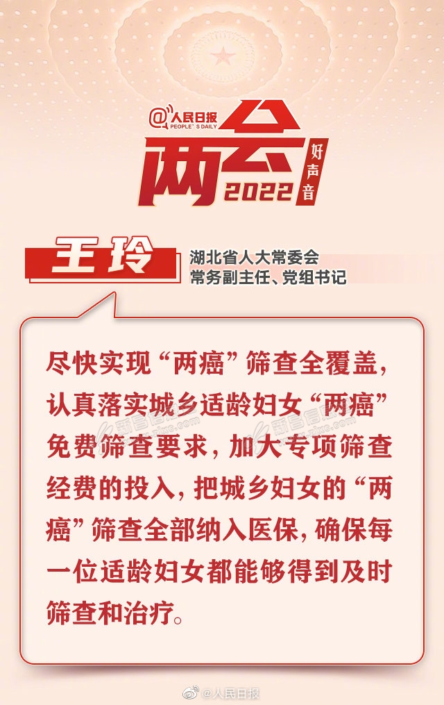 王玲建议,尽快实现“两癌”筛查全覆盖,认真落实城乡适龄妇女“两癌”免费筛查要求,加大专项筛查经费的投入,把城乡妇女的“两癌”筛查全部纳入医保,确保每一位适龄妇女都能够得到及时筛查和治疗。(本报记者 葛 ...