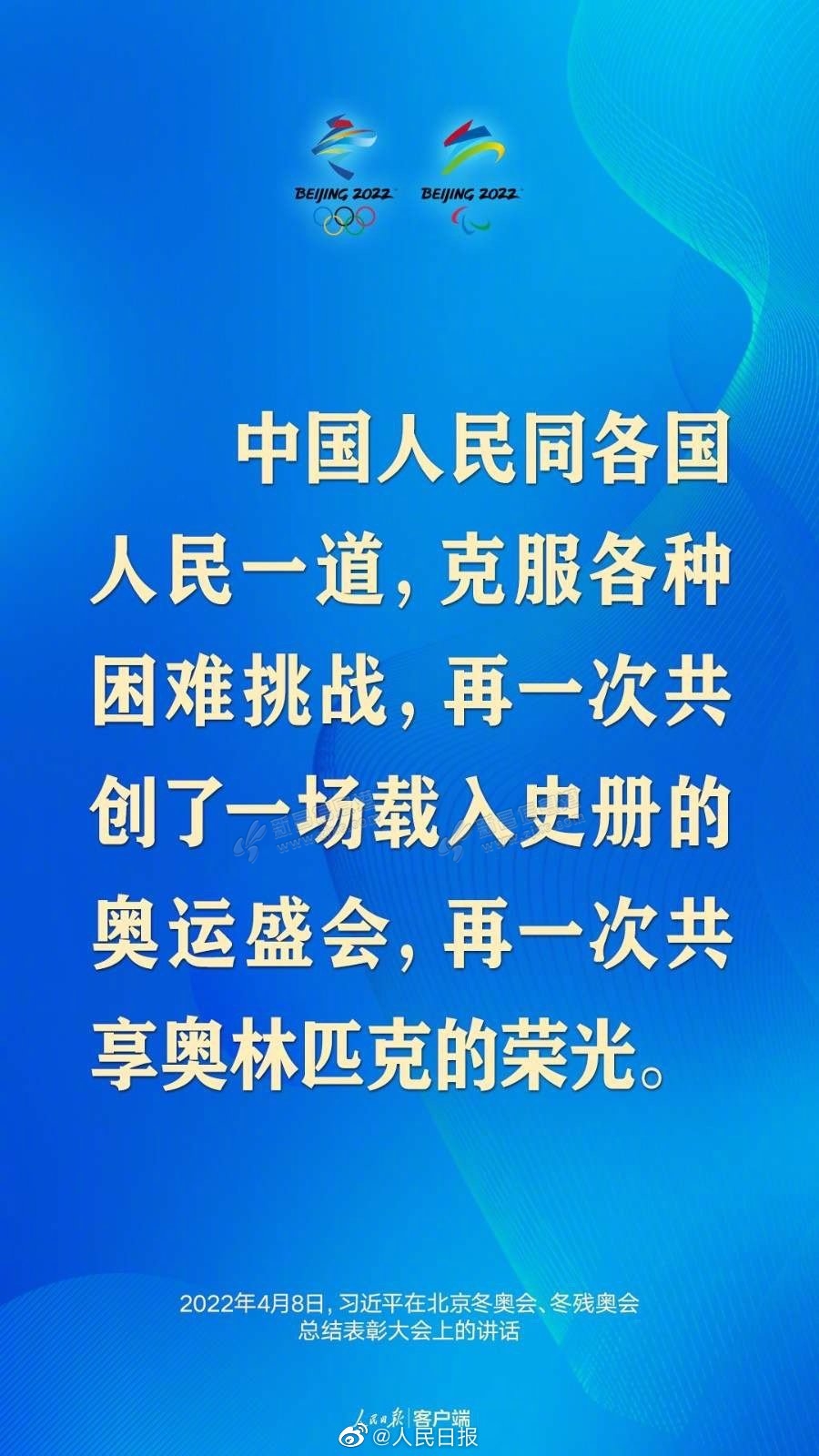 “再一次共创了一场载入史册的奥运盛会,再一次共享奥林匹克的荣光。”8日上午,习近平在北京冬奥会冬残奥会总结表彰大会上发表重要讲话。收藏金句↓↓北京冬奥精神如何诠释 来源:微博帐号@人 ...