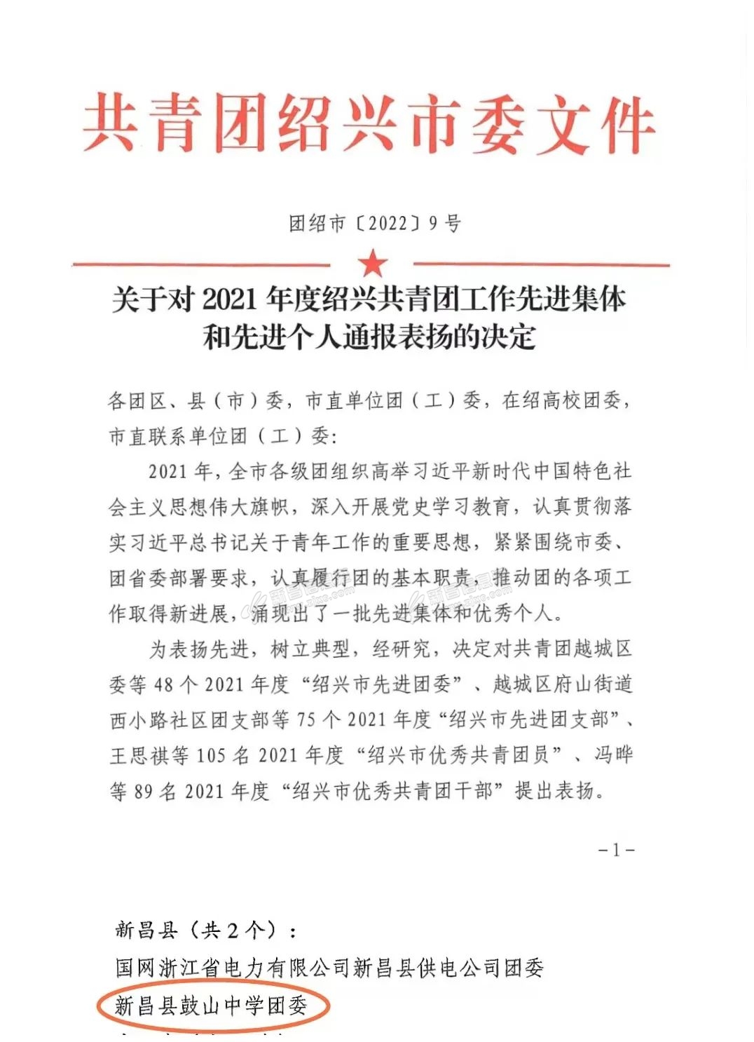 鼓山中学团 委被评为绍兴市先进团 委 新思想引领新时代,新时代呼唤新青年,新青年展现新担当。鼓山中学团委将继续团结带领广大团员青年踔厉奋发、笃行不怠,为实现中国梦增添强大的青春力量。 来源;新 ...