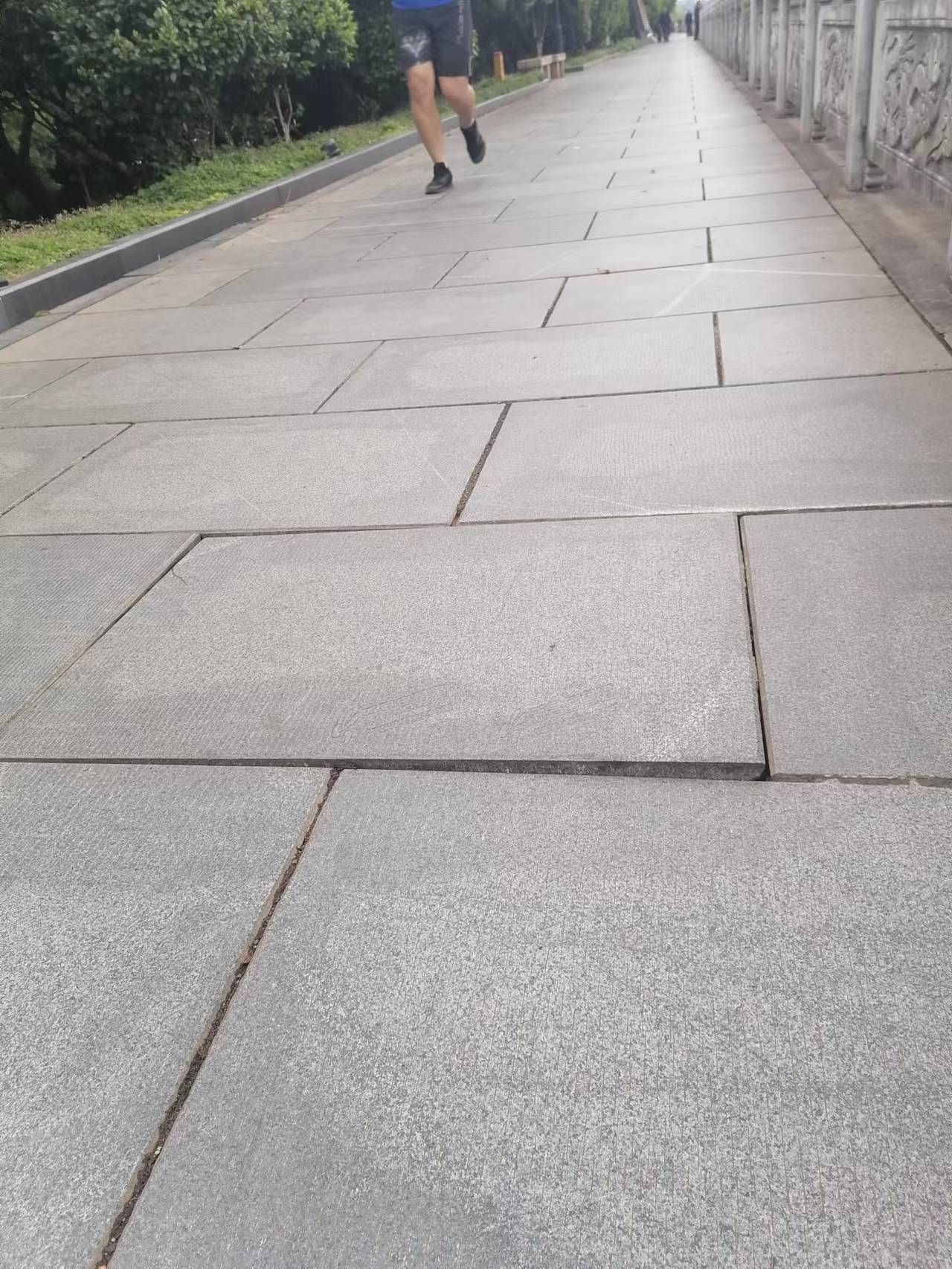 今天早上在江滨公园江边走路,到那个凉厅下面一点点的位置,远远看见一对老人在走路,看样子年龄有80岁以上,男的柱着拐杖,女的被地下的砖绊住了,往前闯了好几步,还好没倒去,不然这么大的年纪遭殃了,整块地砖已 ...