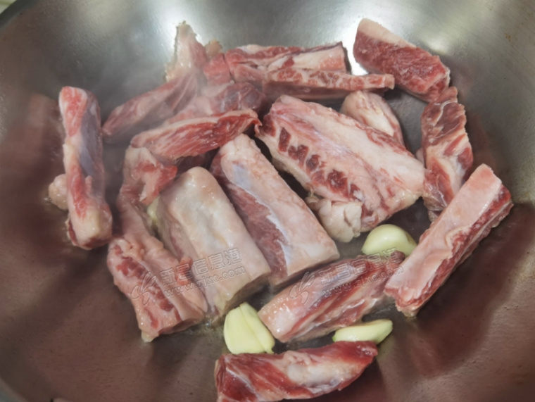 今天做的地锅牛肋条 谷饲的安格斯牛肋条还是蛮肥的,花纹也很不错。切小块以后直接放入锅里,没放油。放了几个蒜子。 部门里小伙姑娘们纷纷点赞