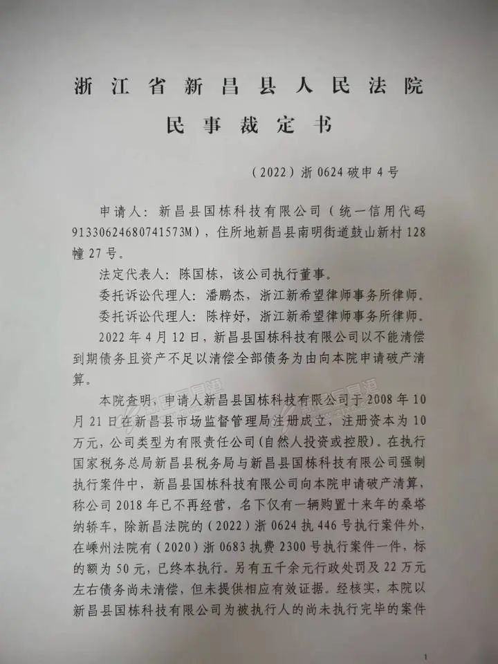 新昌县国栋科技有限公司管理人将于2022年8月23日10时起在阿里拍卖破产强清平台上对新昌县国栋科技有限公司的所有的车辆进行第一次公开拍卖活动。 来源:新昌县人民法院 原标题:新昌又一公司破产清算 ...