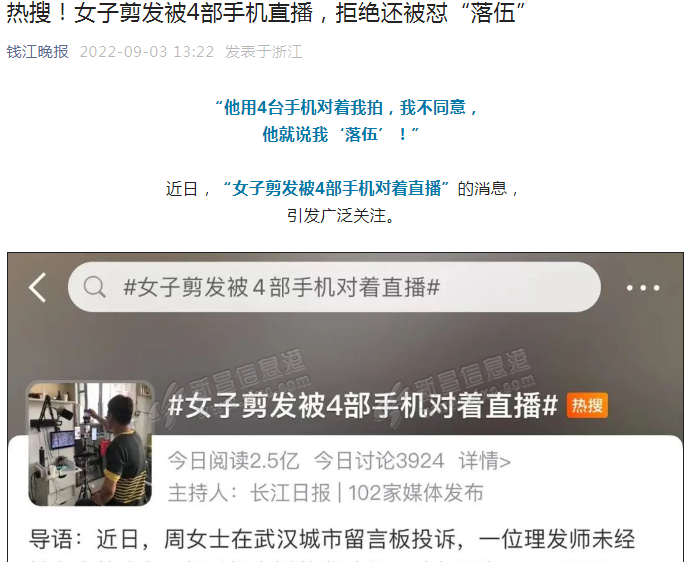 现在直播行业挺热门的,连理发师都会有上万的关注,但我本以为出境的顾客都是询问过并同意了的,没想到居然会有顾客不乐意出境还说顾客老土的,真的是不知道该说什么。 毕竟不是所有人都愿意被四台手机怼着拍的 ...