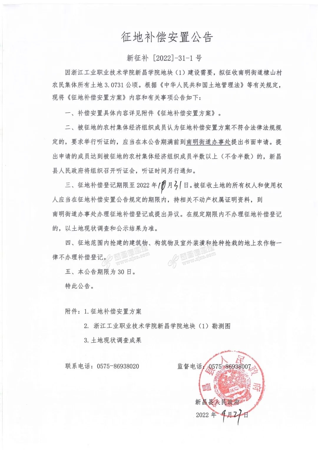 南明街道棣山村 来源:新昌县人民政府 原标题:新昌多个地方土地征收