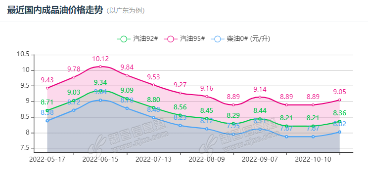 10月油价重新上涨后,全年油价累计大涨超1.20元/升。全年呈现“12涨,7跌,1搁浅”,涨跌互抵之后,2022年共累计上调汽油1490元/吨,柴油1435元/吨,折算每升累计上涨1.14元/升-1.39元/升,95汽油部分地区已重回“9 ...