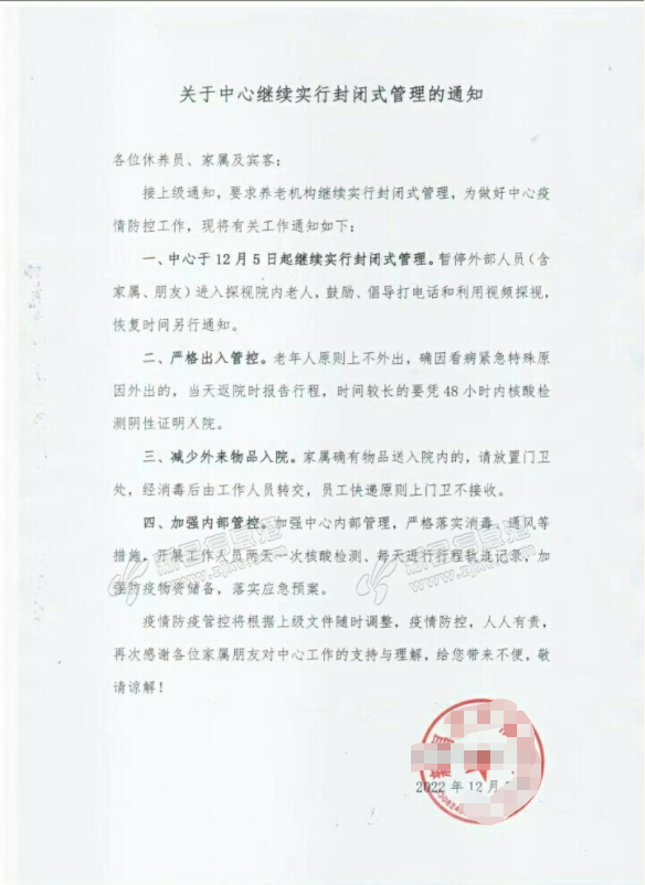 养老院置防疫新十条于不顾,自立门规!没部门管吗?只会从严,不会放宽。