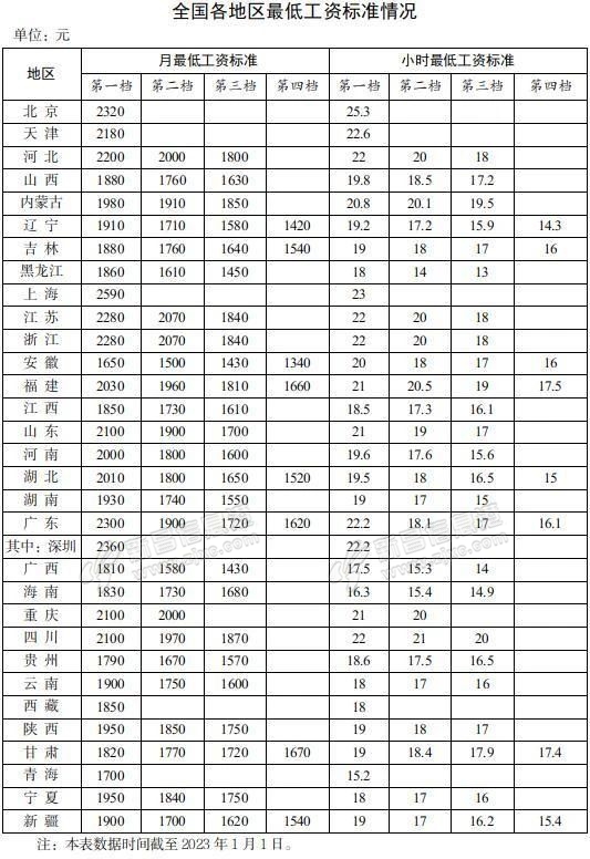 1月2日,人社部官网发布了全国各地区最低工资标准情况(截至2023年1月1日),上海月最低工资标准达到2590元,为全国最高。14个地区月最低工资标准达到2000元及以上。 人民币资料图。中新网记者 李金磊 摄 ...
