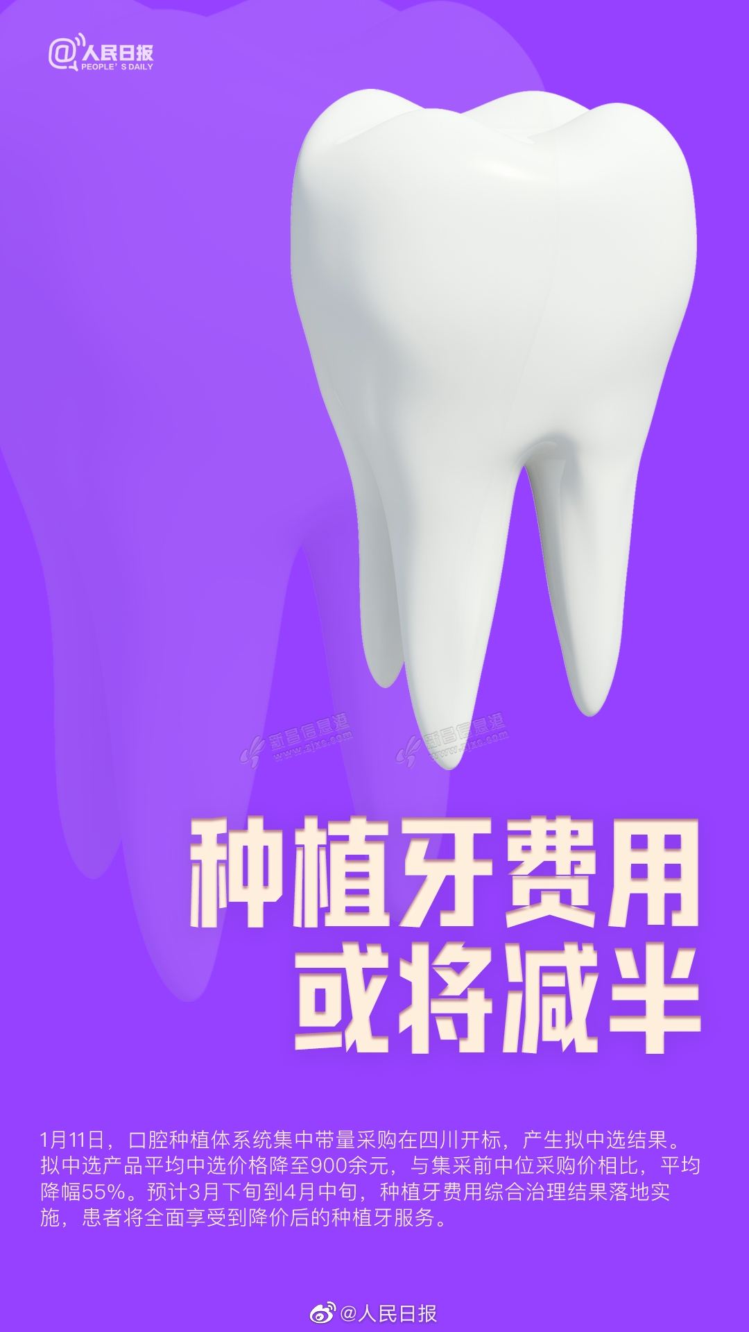 1月11日,口腔种植体系统集中带量采购在四川开标,产生拟中选结果。拟中选产品平均中选价格降至900余元,与集采前中位采购价相比,平均降幅55%。预计3月下旬到4月中旬,种植牙费用综合治理结果落地实施,患者将全面 ...