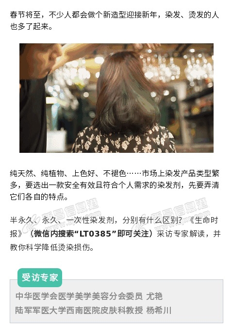 春节将至,不少人都会做个新造型迎接新年,染发、烫发的人也多了起来。市场上染发产品类型繁多,要选出一款安全有效且符合个人需求的染发剂,先要弄清它们各自的特点。半永久、永久、一次性染发剂,分别有什么区别? ...