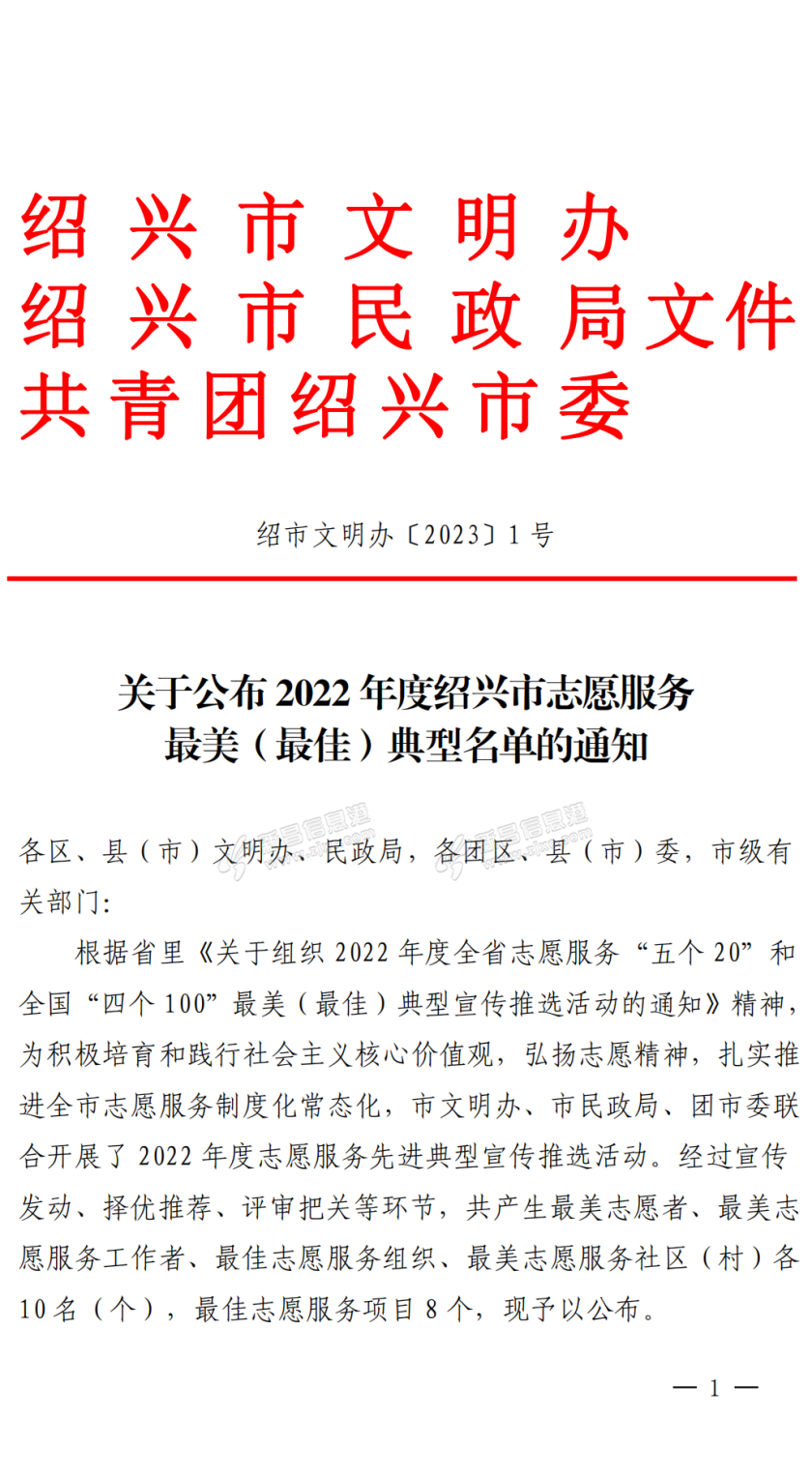 喜 报根据省《关于组织 2022 年度全省志愿服务“五个 20”和全国“四个 100”最美(最佳)典型宣传推选活动的通知》精神,为积极培育和践行社会主义核心价值观,弘扬志愿精神,扎实推进全市志愿服务制度化常态 ...
