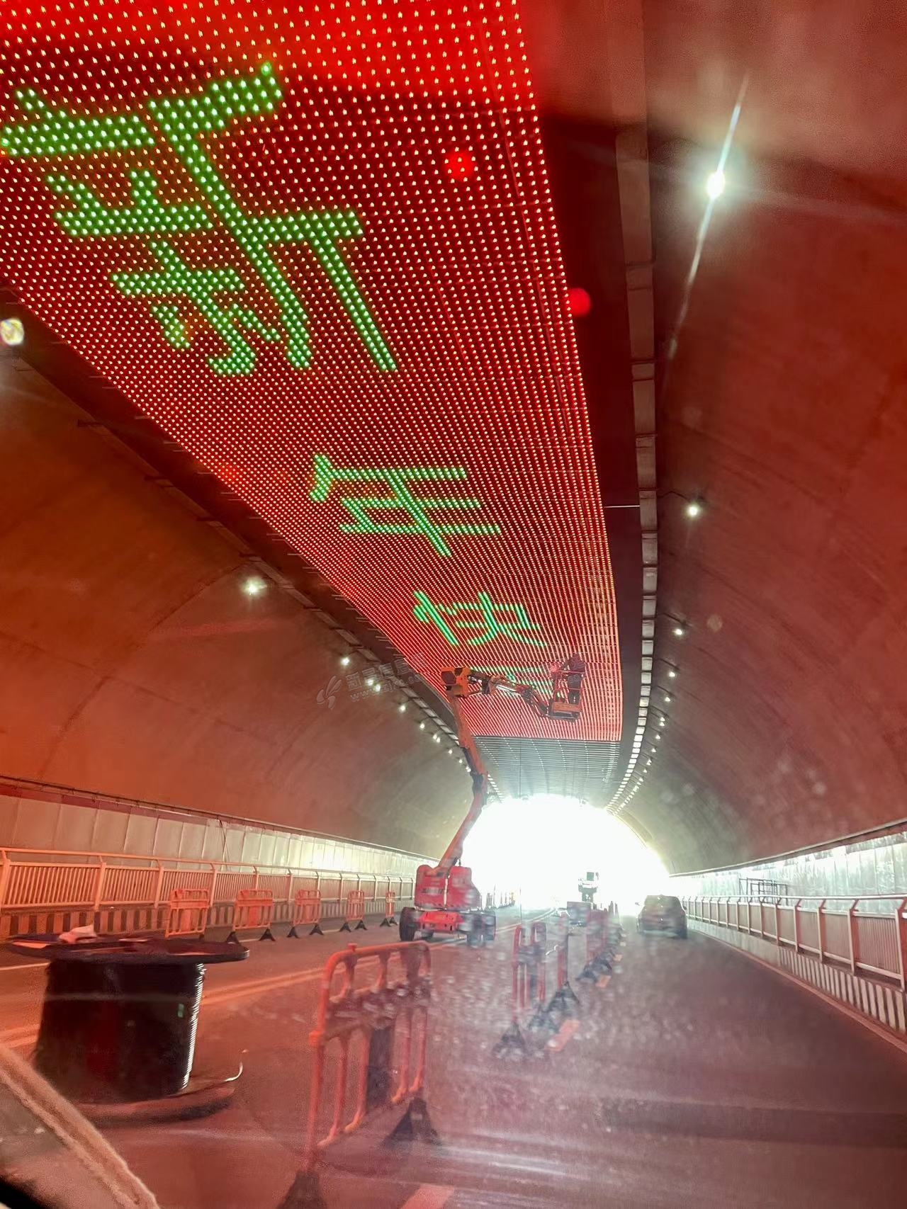 新民隧道里面。顶上装了个灯光秀,挺好看的。 看着很漂亮新颖的样子 只是我这样色弱又散光的人车开过去。 眼睛有点花叉叉的。 是否影响行安全