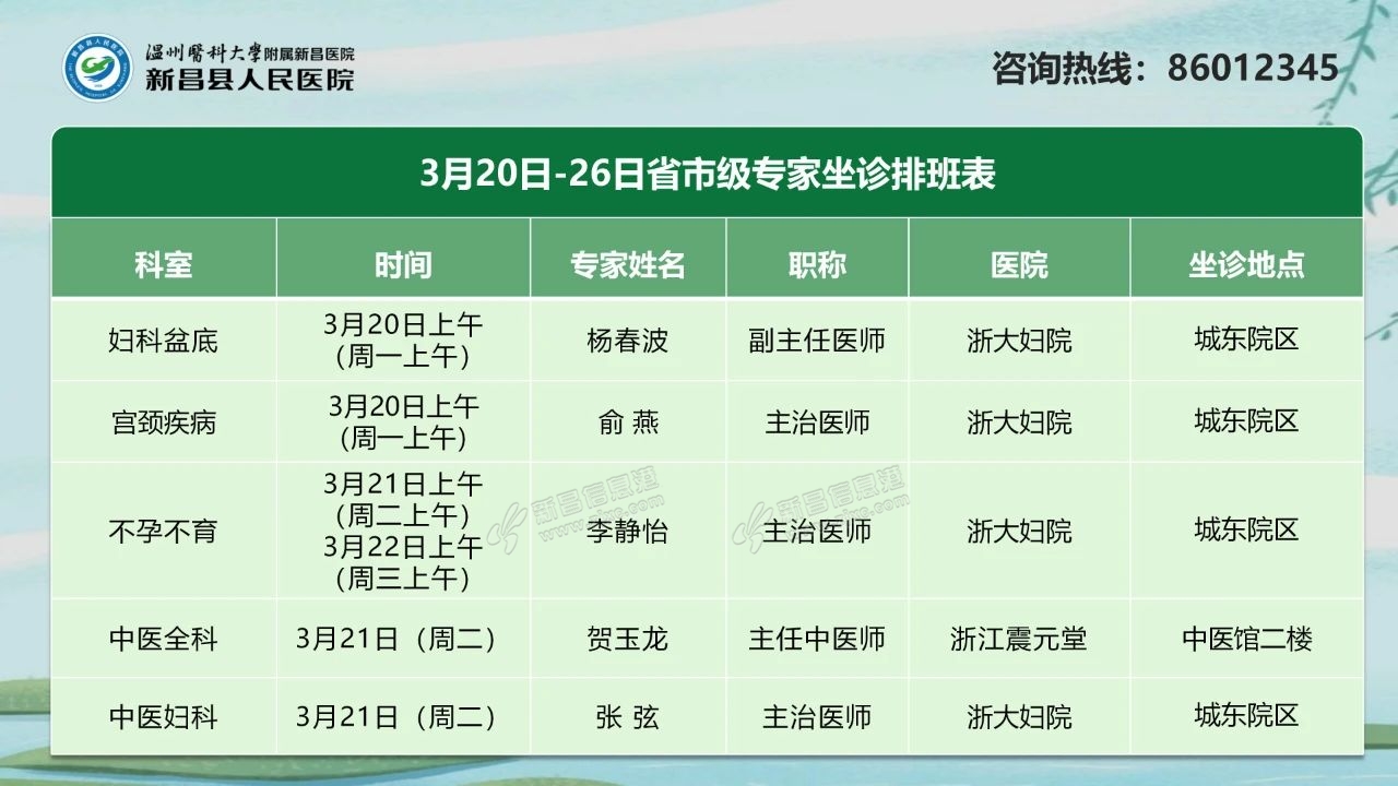 省市级专家坐诊信息 来源:新昌人医