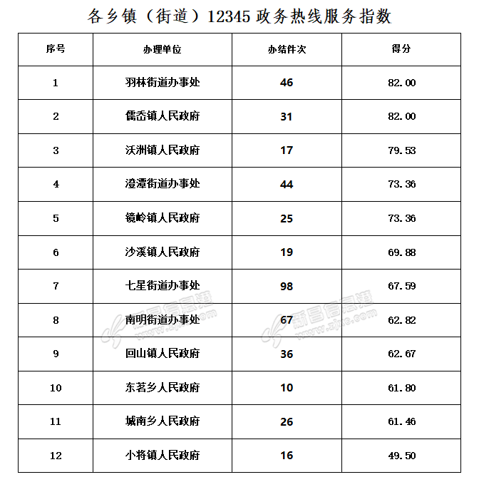 为提升“12345”政务热线事项办理质量与效率,全力助推我县“最多跑一次”改革,根据《新昌县12345政务热线服务指数媒体公开实施方案(2022年版)》的要求,现将2月12345政务热线服务指数通报如下: