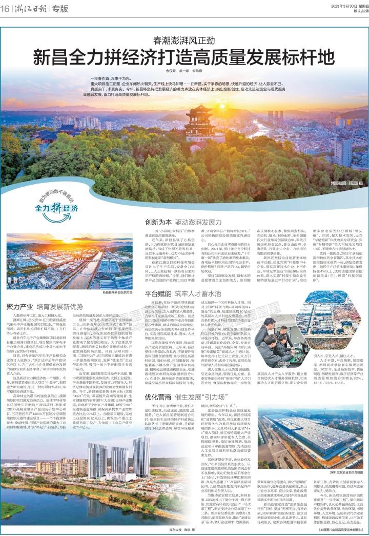 今年,新昌将坚持把发展经济的着力点放在实体经济上,突出创新创优,推动先进制造业与现代服务业融合发展。3月30日出版的《浙江日报》对此进行专版宣传: 海创大楼 筑巢引凤,赋能支撑。新昌始终以开放的姿 ...