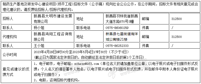 招标公告 招标工程项目编号:2023 (FJ) 1.招标条件 本招标项目制药生产基地及研发中心建设项目(场平工程)已由 2304-33624-04-01-498187 批准建设,招标人(项目业主)为新昌县大明市建设发展有限 ...