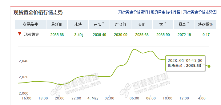 北京时间5月4日,现货黄金突破历史新高2074.77美元/盎司,盘中一度涨破2085.4美元/盎司。截至4日下午,现货黄金报2035.53美元/盎司,涨0.09%。 记者从杭州中国黄金临平银泰店了解到,5月3日门店的金价是530元, ...