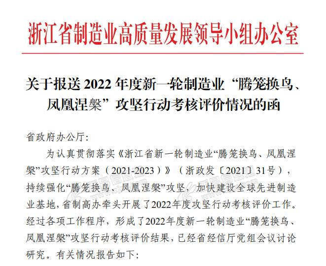 近日,省制高办发布《关于报送2022年度新一轮制造业“腾笼换鸟、凤凰涅槃”攻坚行动考核评价情况的函》,新昌县入围全省考核激励建议名单,获150亩新增建设用地计划指标奖励。 来源:新昌发布