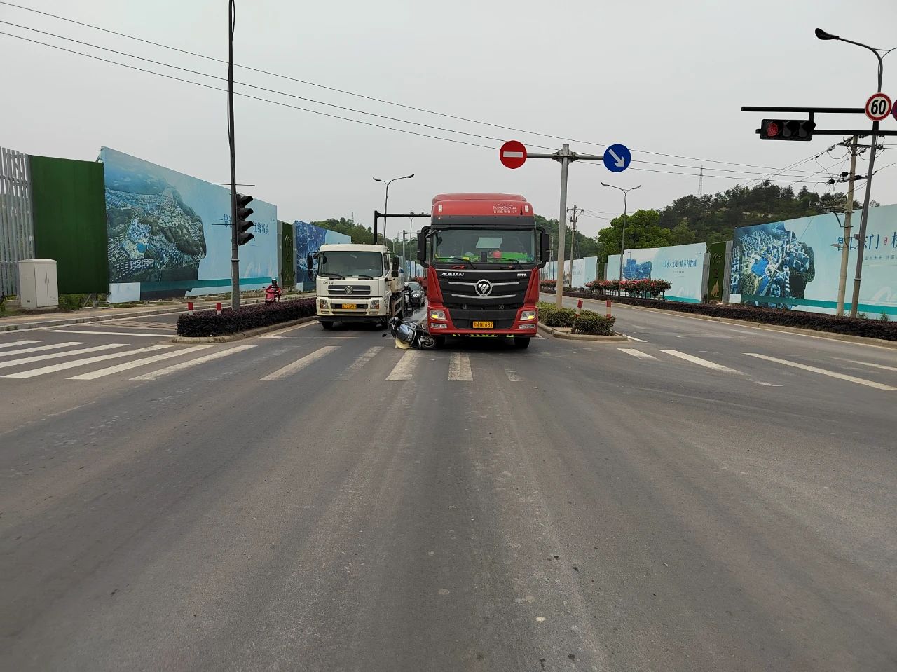 | 摩托车就别去夹在货车旁边 |