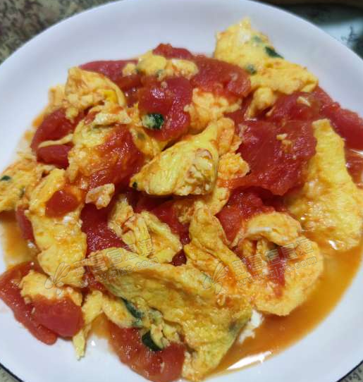 | 我家也是先炒蛋(成块的)后加番茄,稍稍搅拌几下就出锅了,不然番茄容易糊了。 |