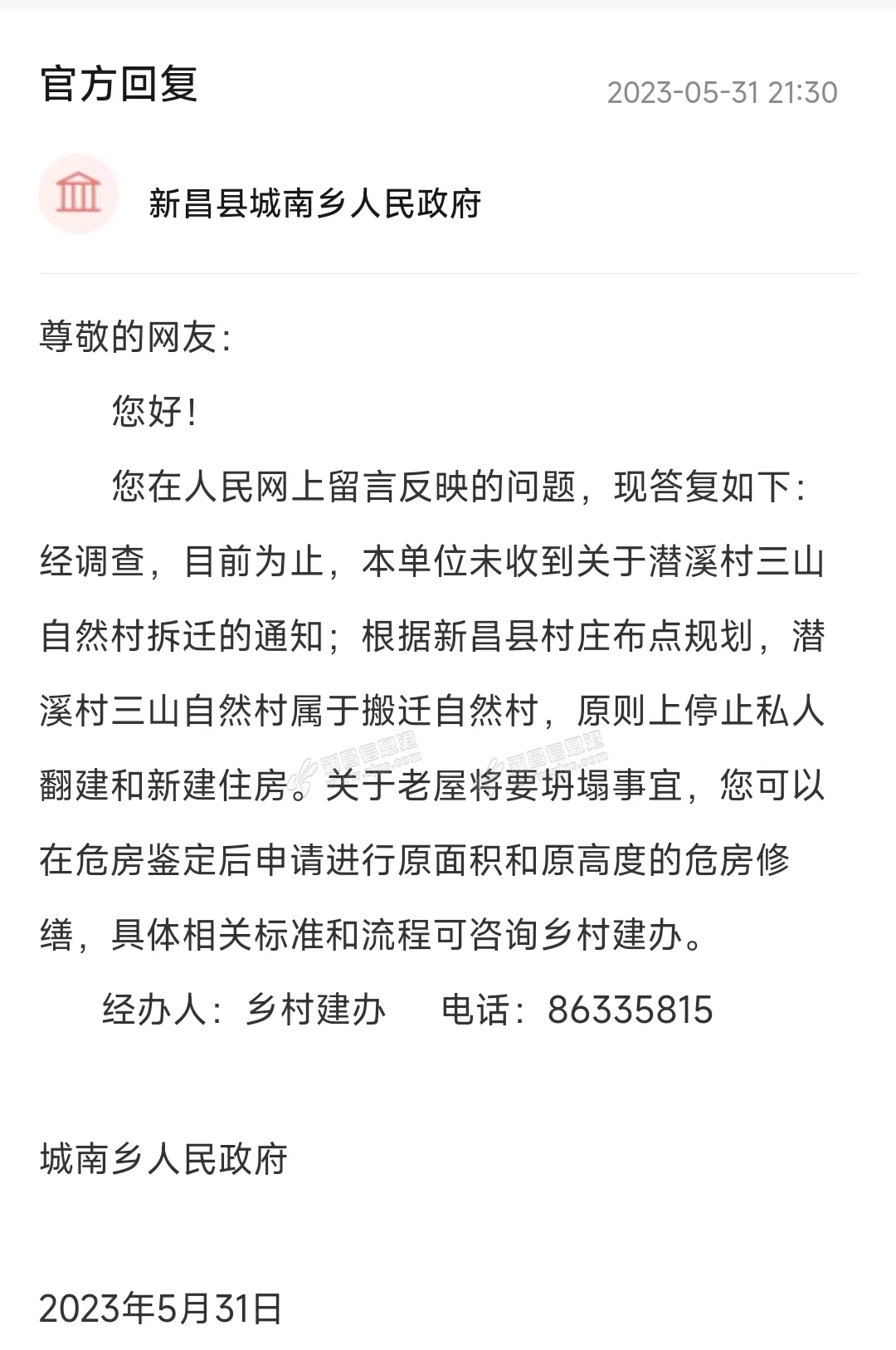 | 那问问城南乡政府有没有这个村批下来可建房的? |