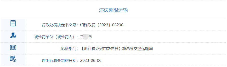 行政处罚决定书(全文或摘要) 主要违法事实: 2023年6月7日,新昌县交通运输局执法人员通过浙江省公路超限运输治理监管平台进行了取证:发现2022年2月26日14时41分 ...