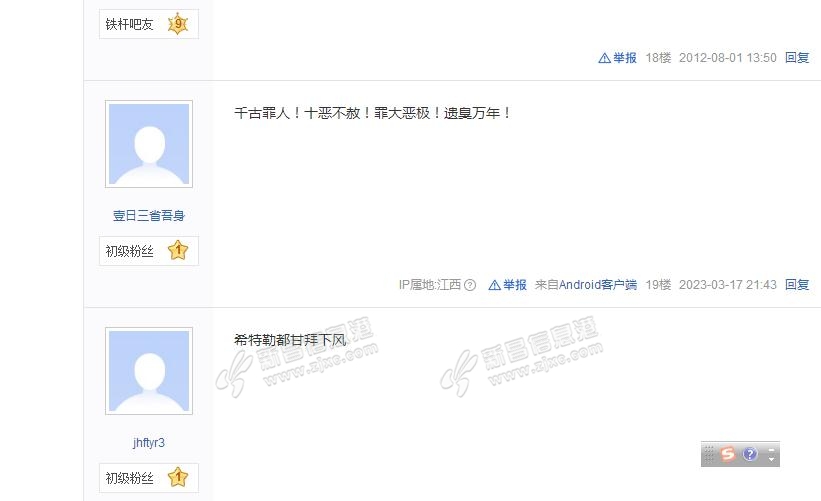 https://tieba.baidu.com/f?kw=%C2 ... DMsNyw4LDIsOQ%3D%3D 百度贴吧,那个贴吧里的网友们群起痛骂嵊州马寅初! |