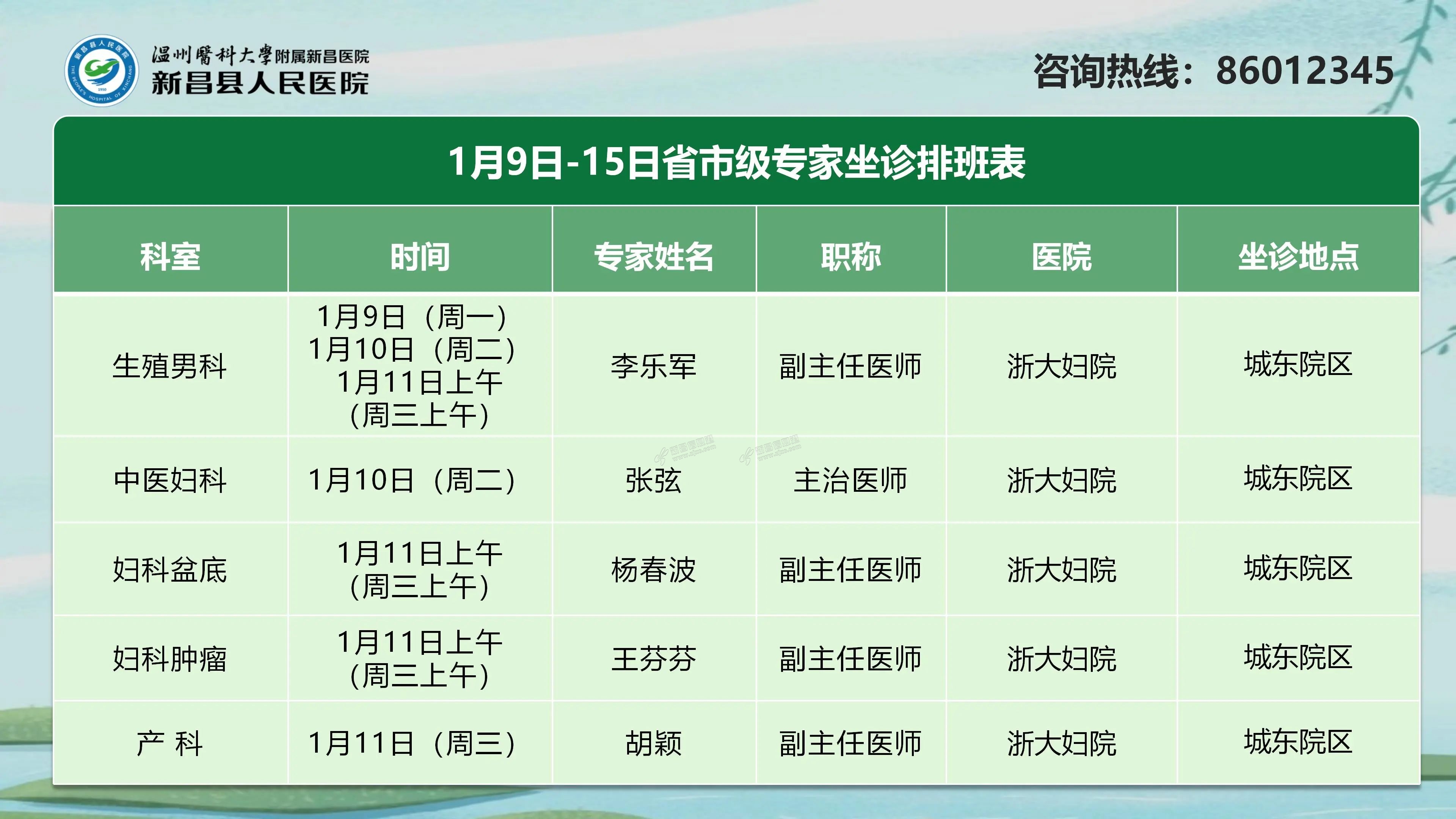 省市级专家坐诊信息 中医妇科张弦 主治医师←点击图片查看详情 预约挂号方式电话预约:提前两天拨打0575-86012345 微信预约:关注“新昌人医”微信公众号 来源:新昌人医