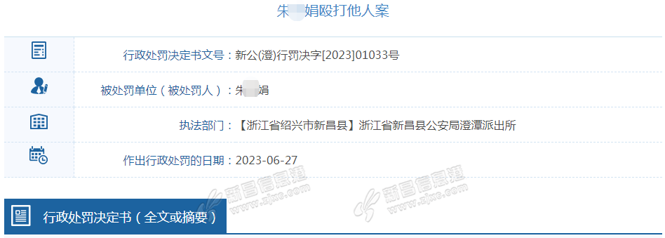 决定给予朱*娟行政拘留十二日并处罚款六百元的行政处罚。 那么受害人什么精神补偿呢 ![]() |
